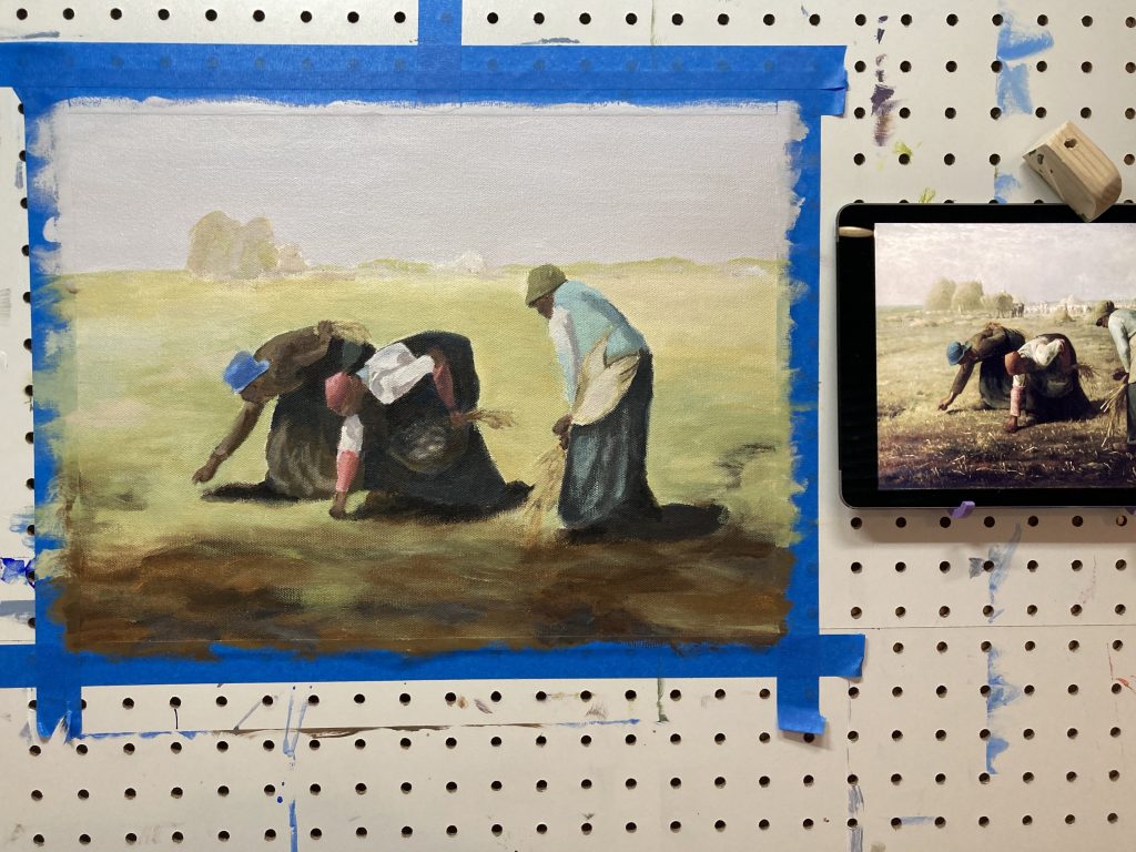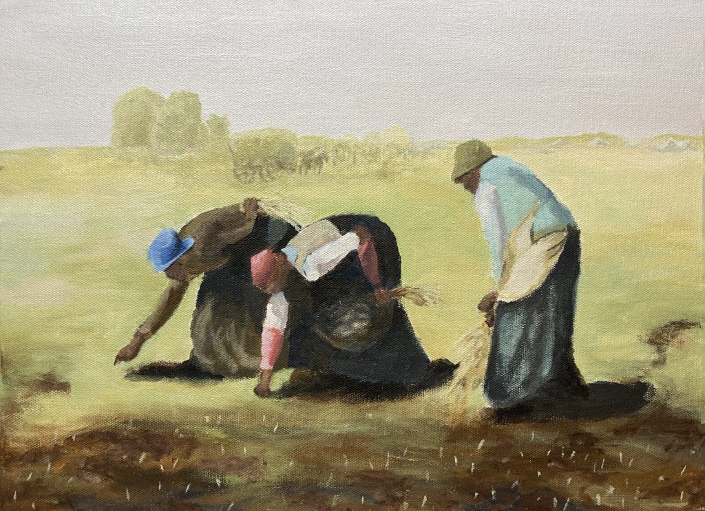 When I was reminded of my love for Millet as I pondered a scene in a popular movie that was clearly influenced by his painting “The Angelus,” the idea of making a copy of “The Gleaners” popped into my head. What could I learn from it?