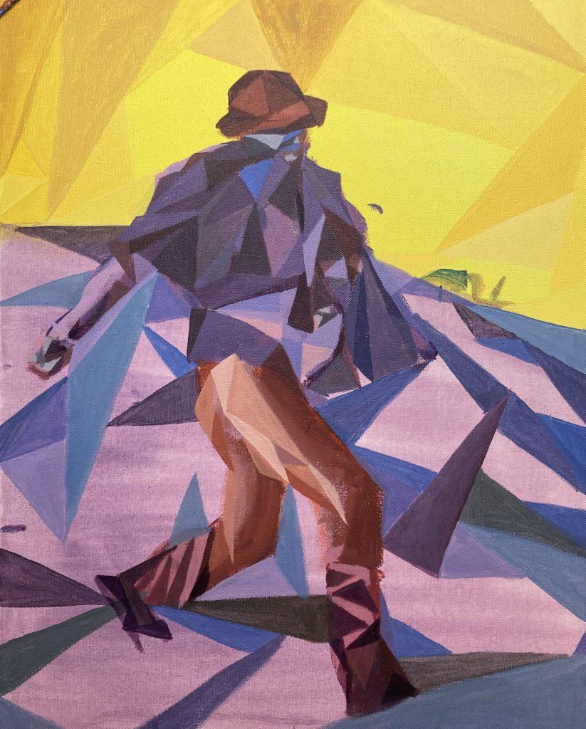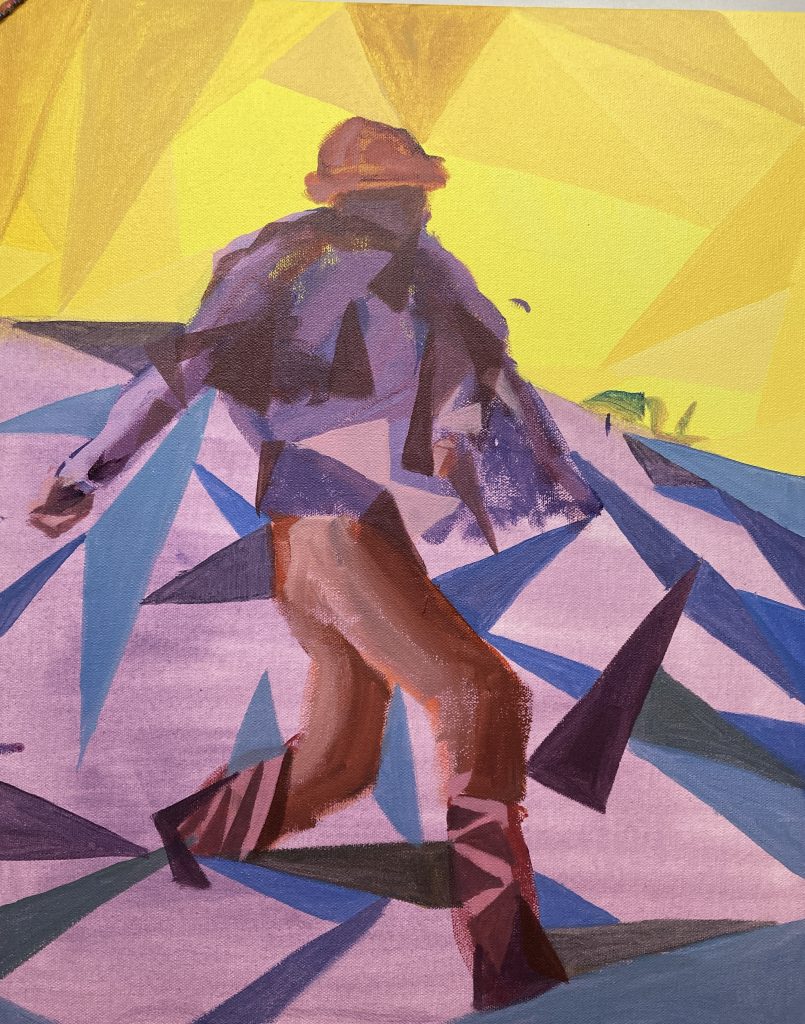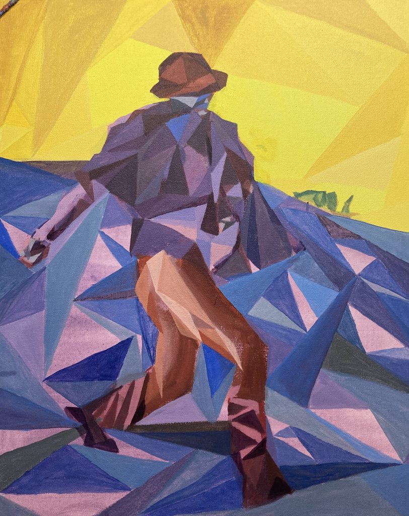 Placement and size of the triangles has to do with following a form, or showing gradation in the sky or ground, and how to lead the eye around the canvas.